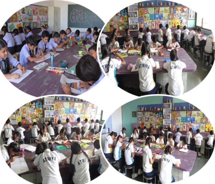 Gujarat Rajya Kala Shikshak Sangh organized Interschool Picture Colouring Competition on 16.01.2023, wherein students of Atmiya Vidyapeeth from grades I to X participated with great interest.