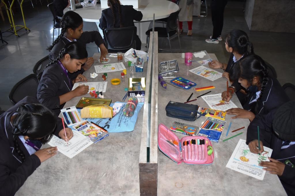 Gujarat Rajya Kala Shikshak Sangh organized Interschool Picture Colouring Competition on 16.01.2023, wherein students of Atmiya Vidyapeeth from grades I to X participated with great interest.